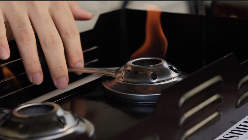 燻製時間は30~40分程、この燻製中にお肉に薫香をつけるとともに十分に火を入れていきます。