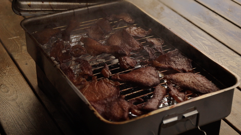 塩を振って余分な水分を抜いてから燻製したことが良かったのか、雑味なくしっかりと旨みが凝縮されていてひと噛みごとに肉の旨みが口の中に広がります。ちなみに、十分に干せていたようで、燻製による酸味や舌へのピリ付きはありません。