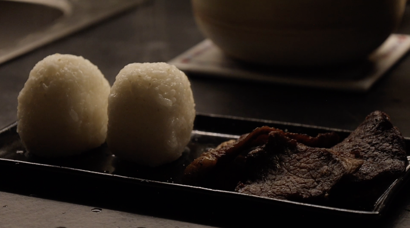 傷ついたアシタカにサンが”干し肉”を食べさせる。