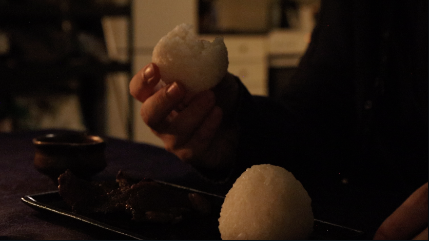 今回はお酒ともお米とも相性の良い干し肉もあるので、塩むすびと干し肉、干し肉と日本酒、そして日本酒と塩むすび、三組それぞれの相性の良さが相まってさらに良い循環を引き起こします。
