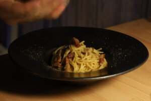 パンチェッタとペコリーノ・ロマーノに加え卵を使用したパスタで、”Pasta all’Amatricana”や”Pasta alla Gricia“とも関係が深いと考えられており、また”Pasta alla Zozzona“との共通点も多いのが特徴です。