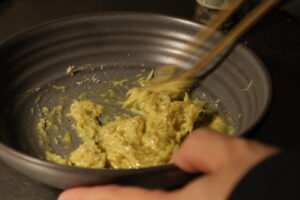 - 満遍なくしっかり混ぜ、卵液を用意する。