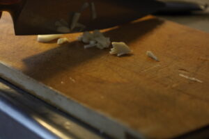 2. ニンニクもみじん切りにしておく。