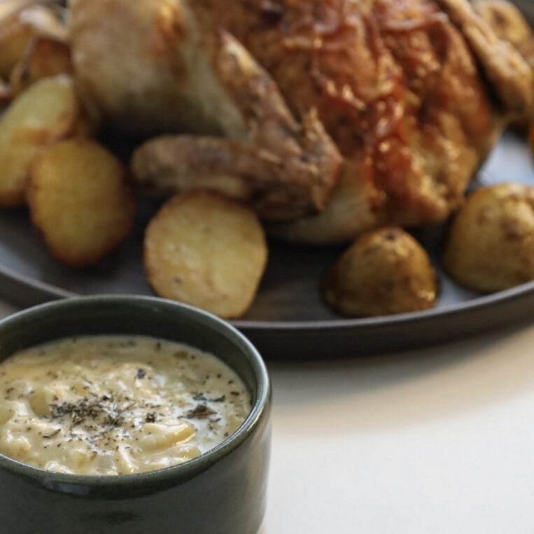 【英国料理】Roast chicken and Bread sauce:ローストチキンとパンのソース