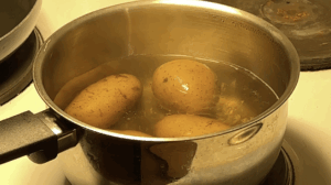 1. ジャガイモは皮のままで良いので芯まで柔らかくなるまで茹でておく。