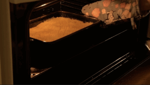 2. 180~200度に温めたオーブンで1時間ほど焼き、表面がこんがりと焼き色が付けば完成。