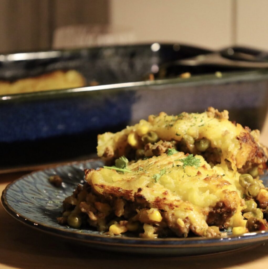 Shehper’s pieとは”羊飼いのパイ”を意味していて、羊肉のミンチとジャガイモのマッシュ、そしてその他野菜を使用するパイです。パイとは言っても、いわゆる小麦粉で作ったパイ生地は使わず、代わりにマッシュポテトをミンチ肉の表面に被せてオーブンでこんがりと焼き上げる料理になります。